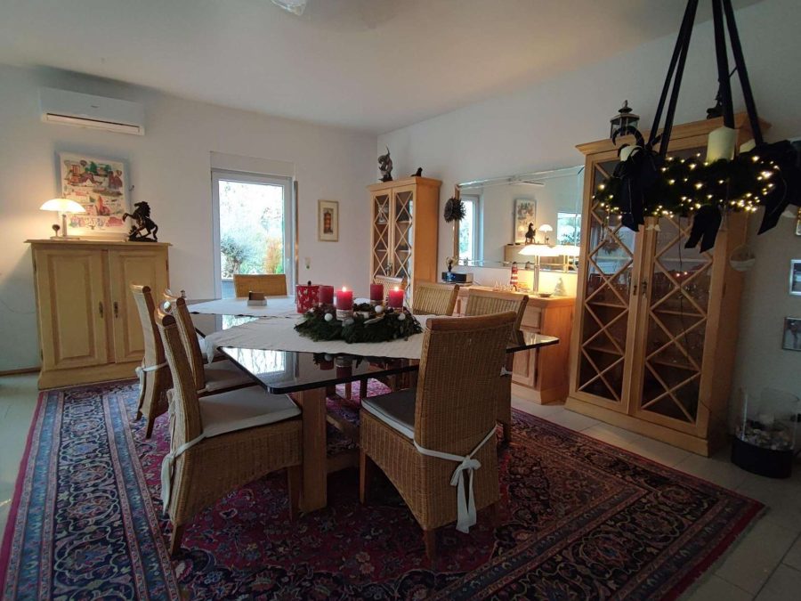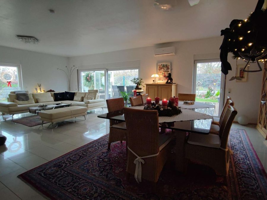 Die Wohneinheit verfügt über eine Wohnfläche von ca. 414 m² und erstreckt sich über insgesamt 10 Räume, darunter drei Schlafzimmer sowie fünf Badezimmer. Der großzügige Wohn- und Essbereich mit offener Küche bildet das Zentrum des Wohnbereichs und überzeugt durch eine moderne Raumgestaltung sowie hochwertige Ausführung. Ein besonderes Highlight stellt der angrenzende Poolbereich dar, der den gehobenen Wohnkomfort zusätzlich unterstreicht.