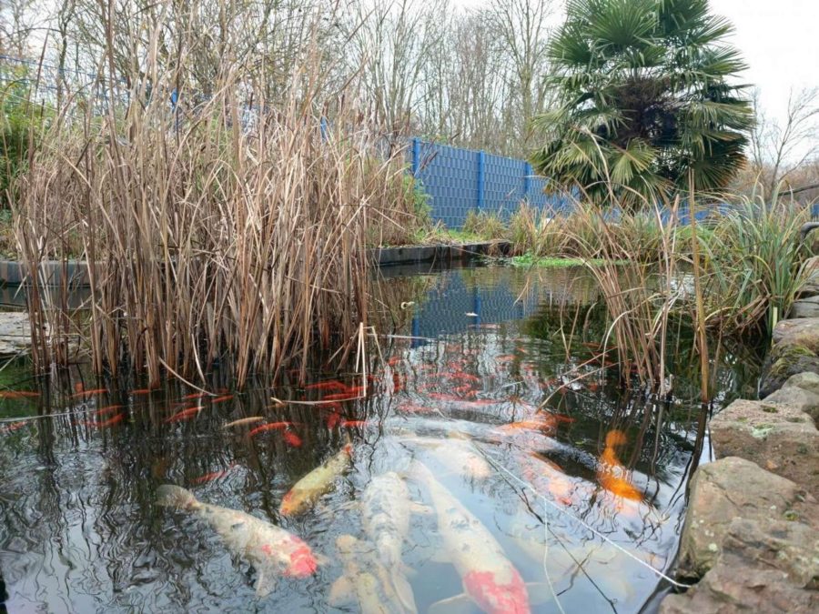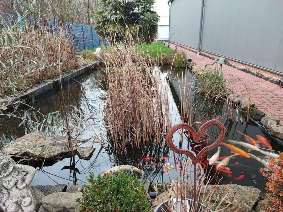 Der Garten bietet einen ruhigen Rückzugsort und lädt dazu ein, die Natur in einem geschützten und gepflegten Umfeld zu genießen. Ein harmonisch integrierter Teich verleiht dem Außenbereich eine besondere Atmosphäre und unterstreicht den hochwertigen Charakter des Grundstücks. Ergänzt wird der Garten durch eine großzügige, überdachte Terrasse, die zu jeder Jahreszeit als erweiterter Aufenthaltsbereich genutzt werden kann.